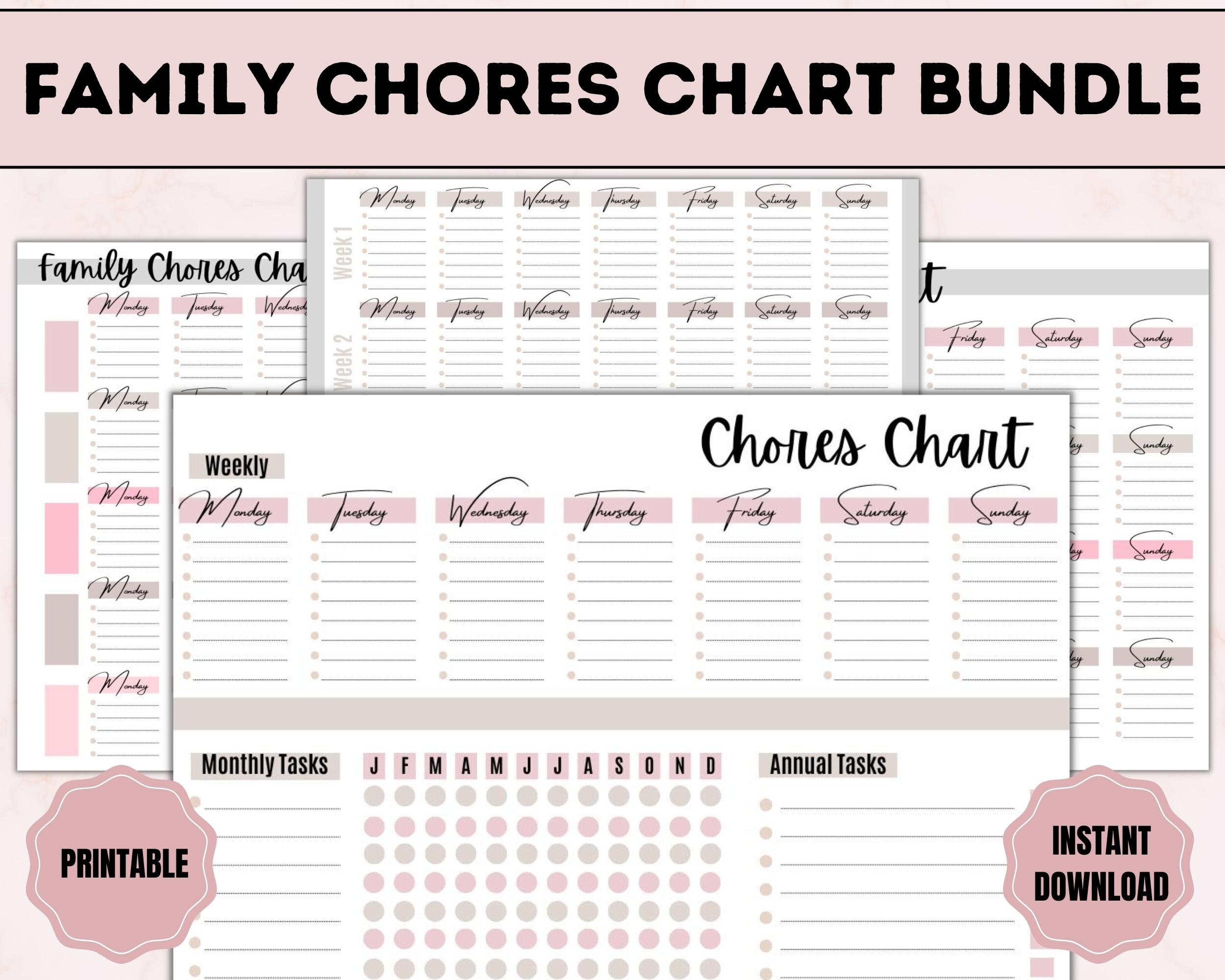 Family Printable Chores Planner Cleaning Schedule Annual Cleaning