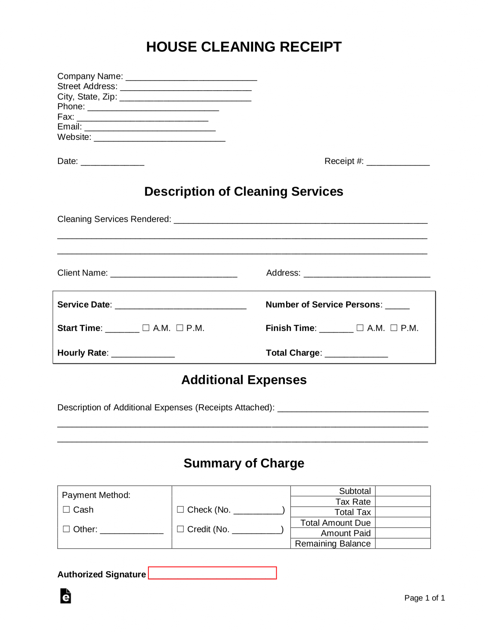 Free Cleaning (Housekeeping) Invoice Template PDF Word eForms