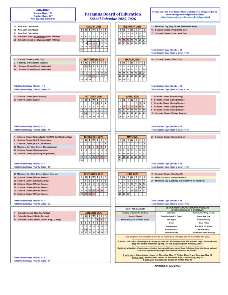 Paramus Public schools calendar 25 26 Revised PDF EduCounty