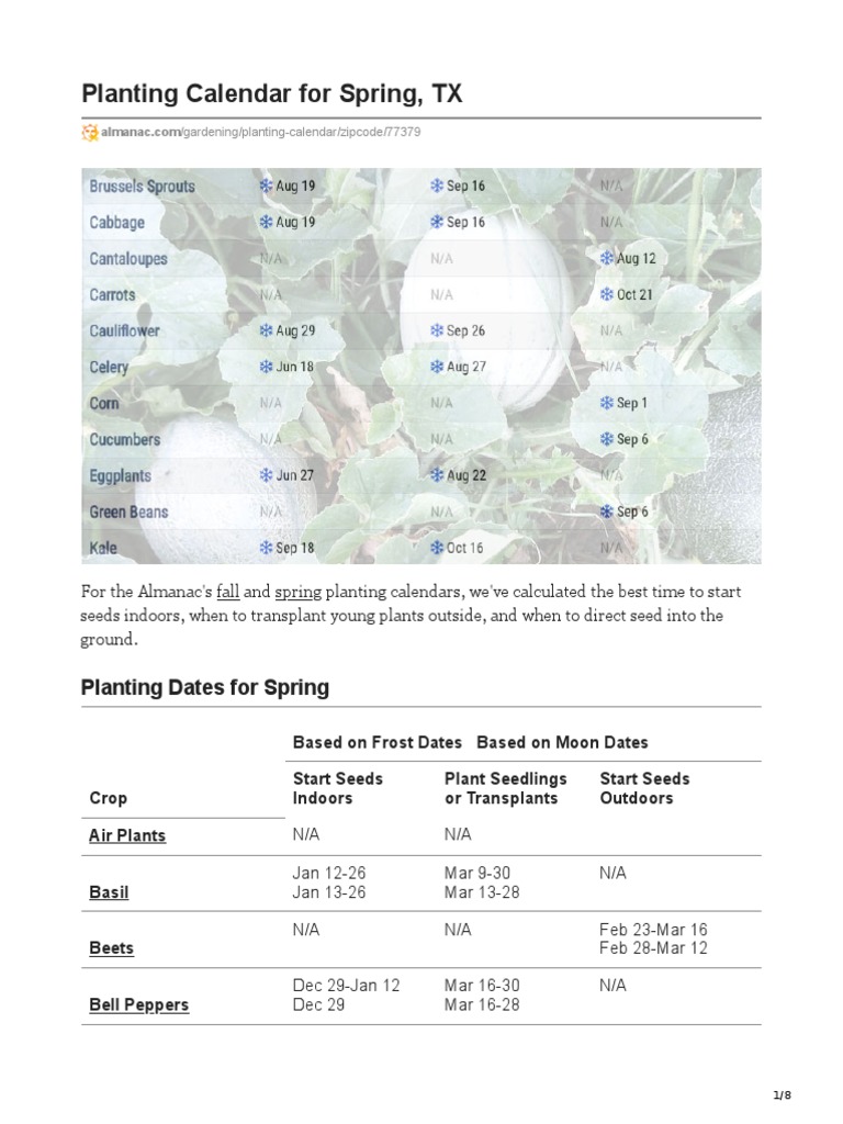 Planting Calendar For Spring TX Download Free PDF Vegetables