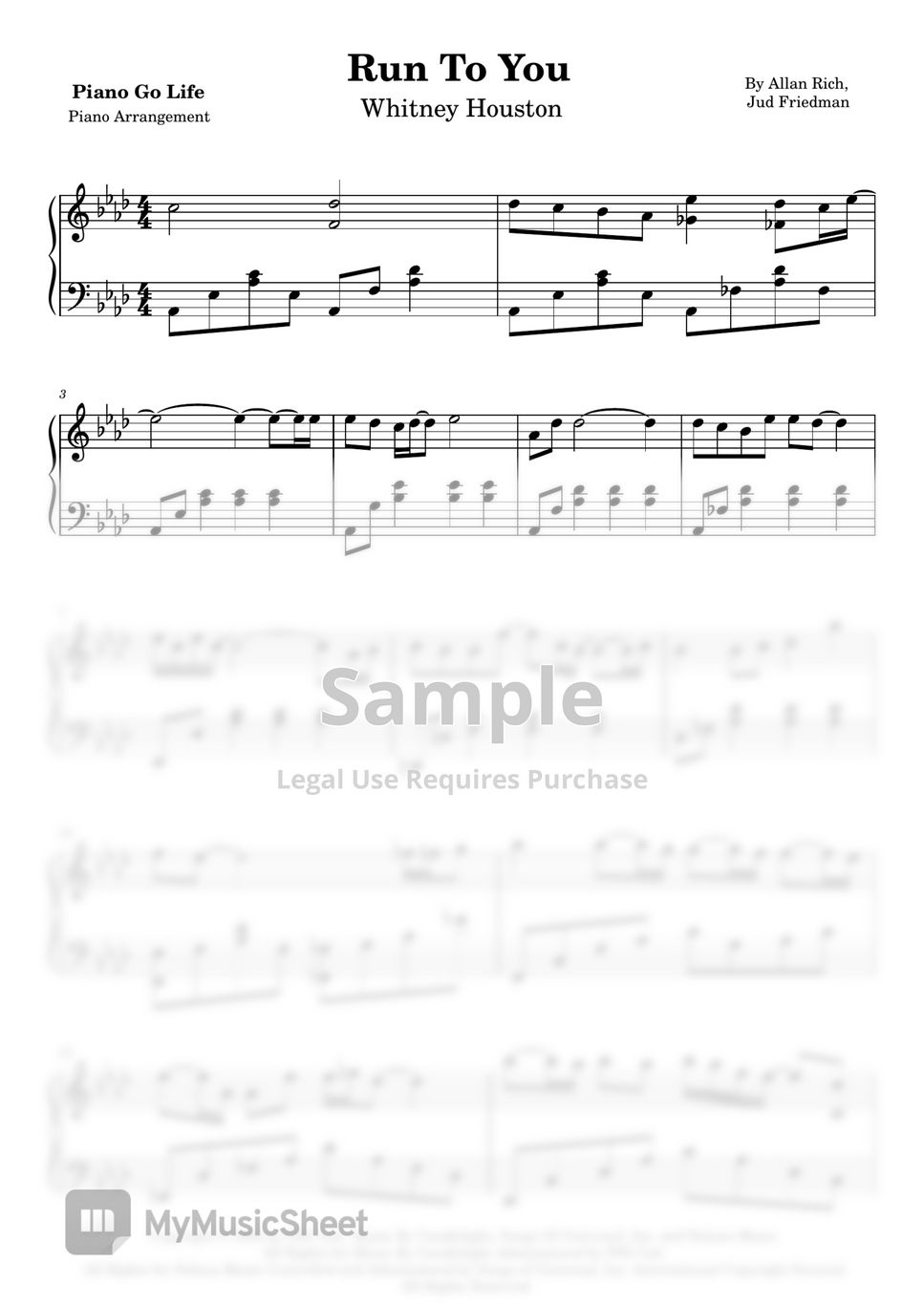 Whitney Houston Run To You Sheet Music by Piano Go Life
