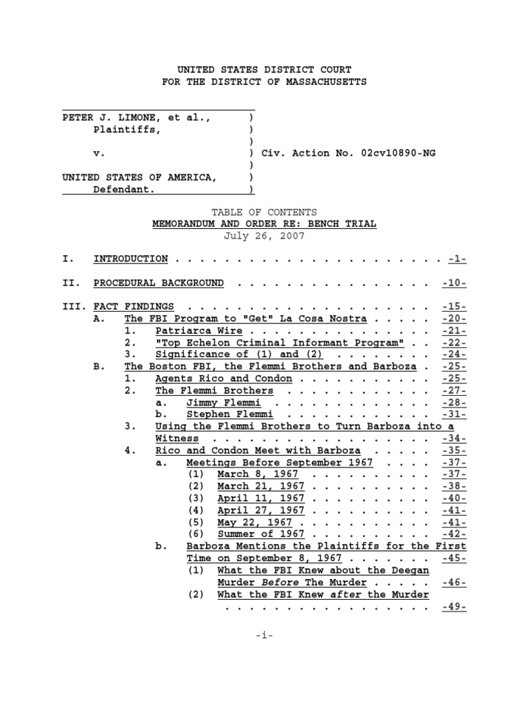Limone Judge Opinion PDF American Government Federal Bureau Of