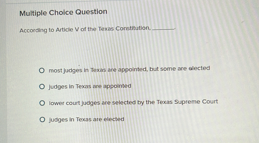 Solved: How are trial court judges selected in Texas? Multiple Choice