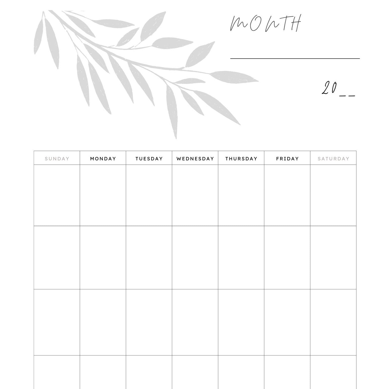 Monthly Blank Calendar Monthly Printable Digital Download Blank