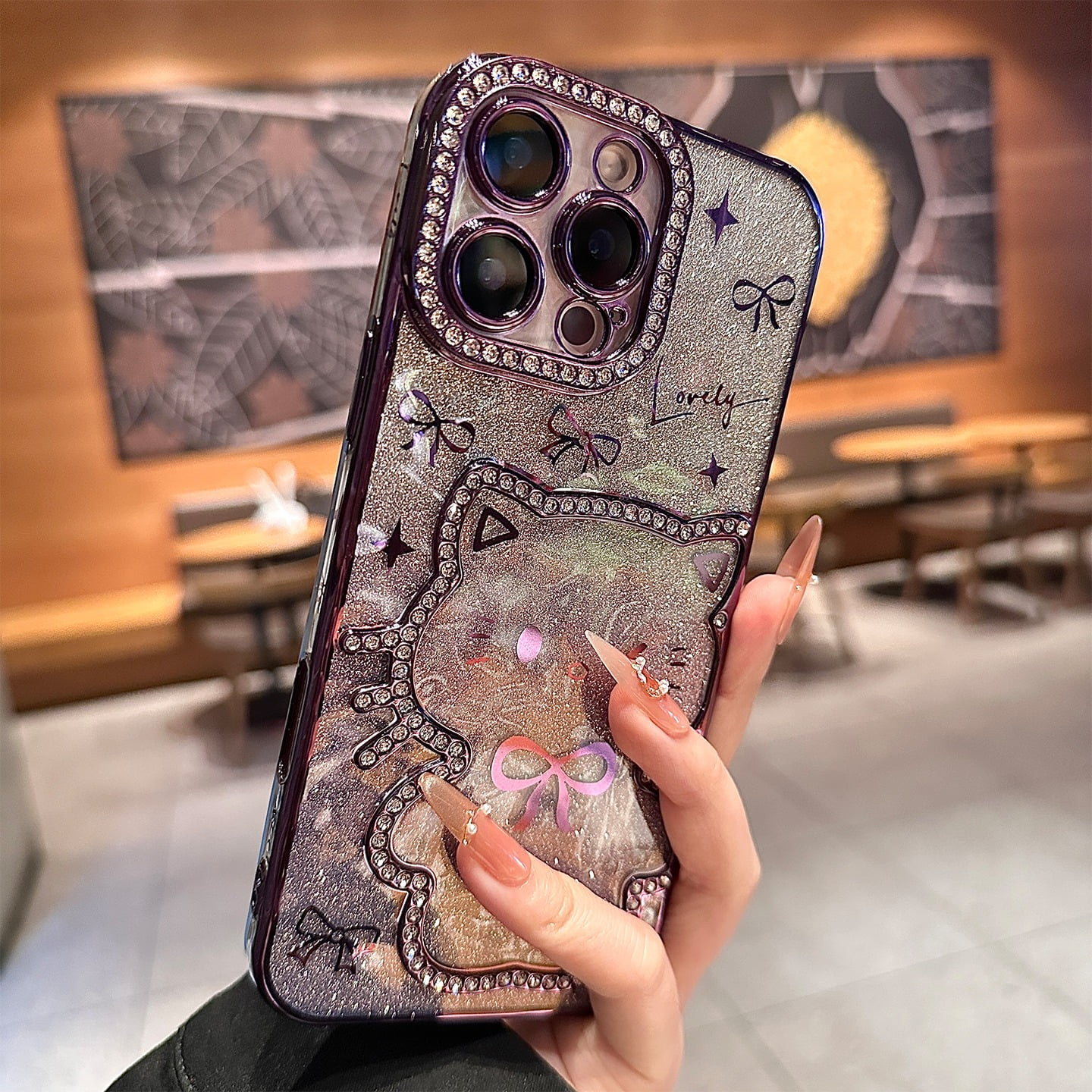 16Pro Max Luxury Cases Women Girl #39 s Glitter Diamond Cat Case for iPhone