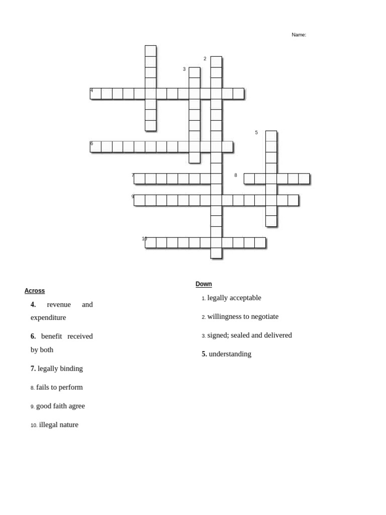 Understanding Sale and Lease Contracts: Crossword Puzzle Course Hero