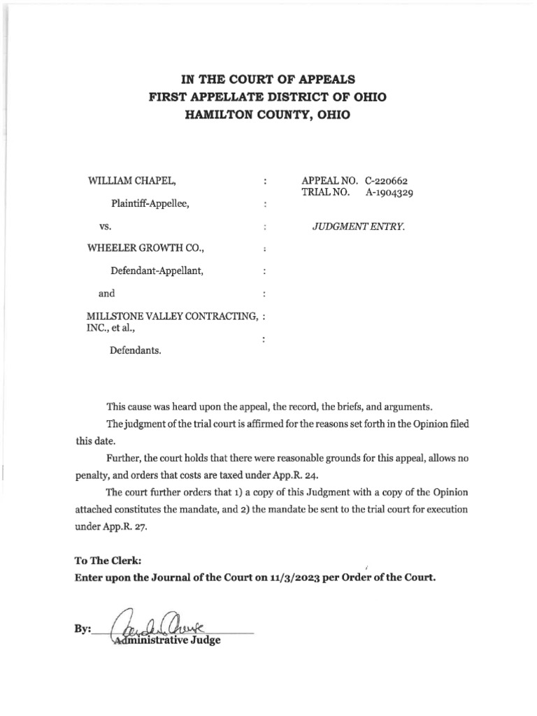 Chapel v Wheeler Growth Company Court of Appeals Decision PDF