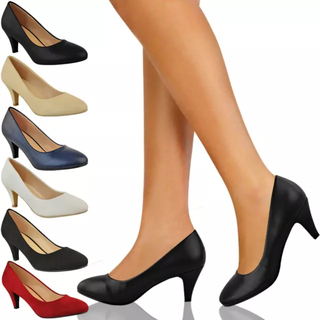 WOMENS LADIES LOW Heel Court Shoes Comfort Work Office Formal Wedding