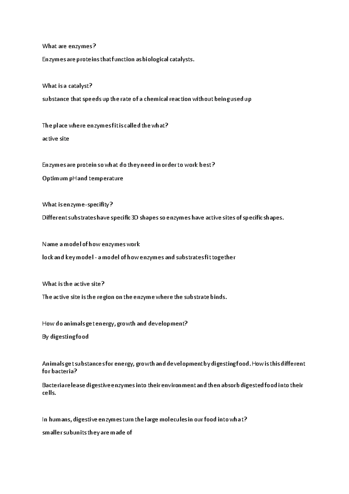 Enzymes Free Interactive Worksheets 530059
