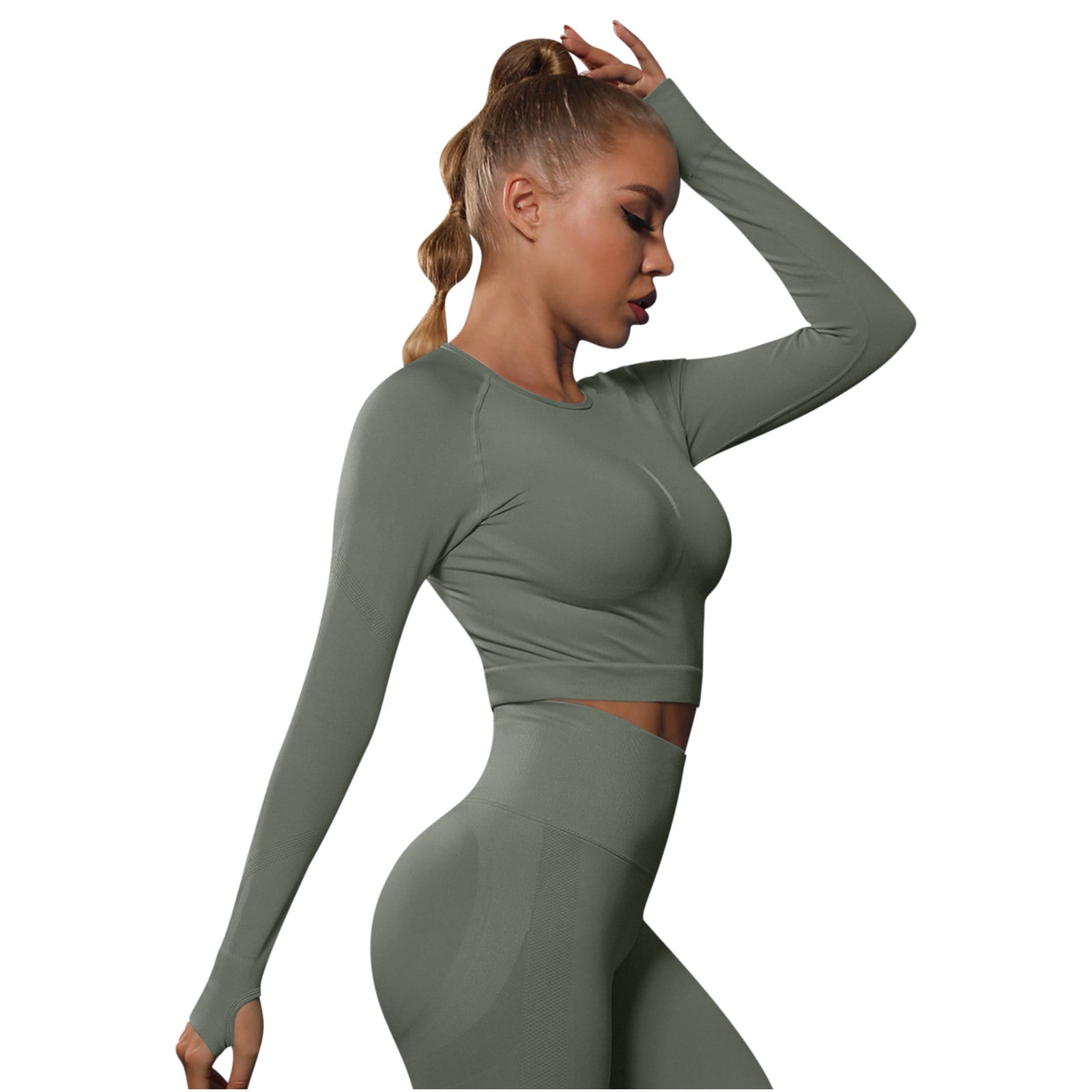 aidice Workout Shirts for Women Cropped Crewneck Long Sleeve Slim