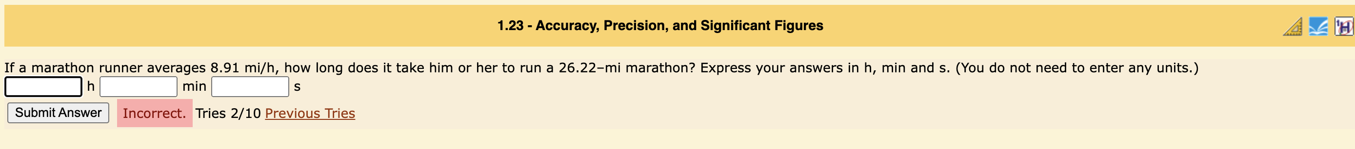 Solved quot If a marathon runner averages 8 91 mi/h how long Chegg com