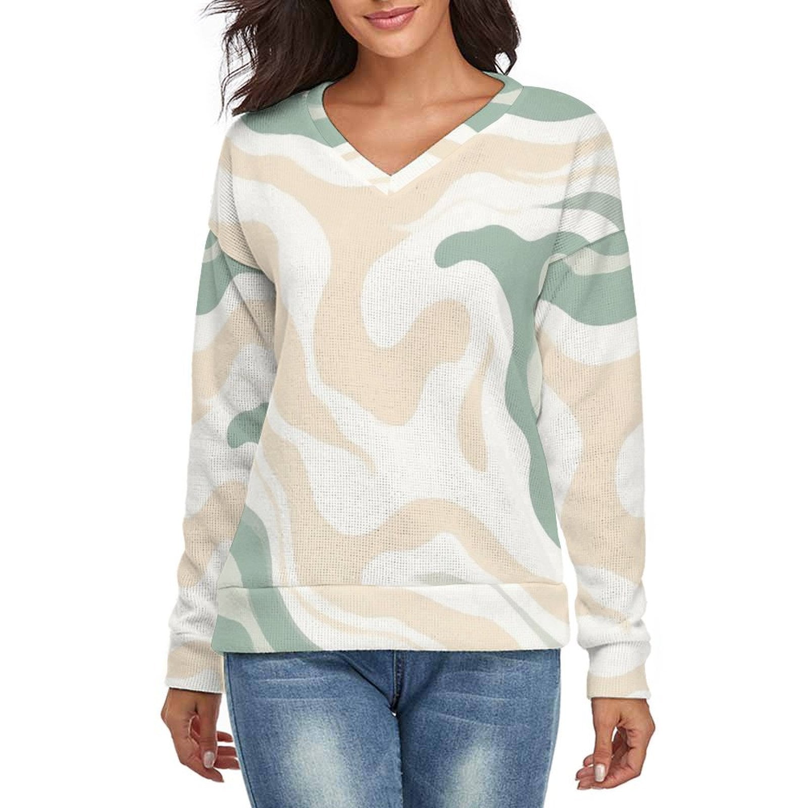 Abstract Pastel Wavy Design Background V neck Sweater Winter Clothes