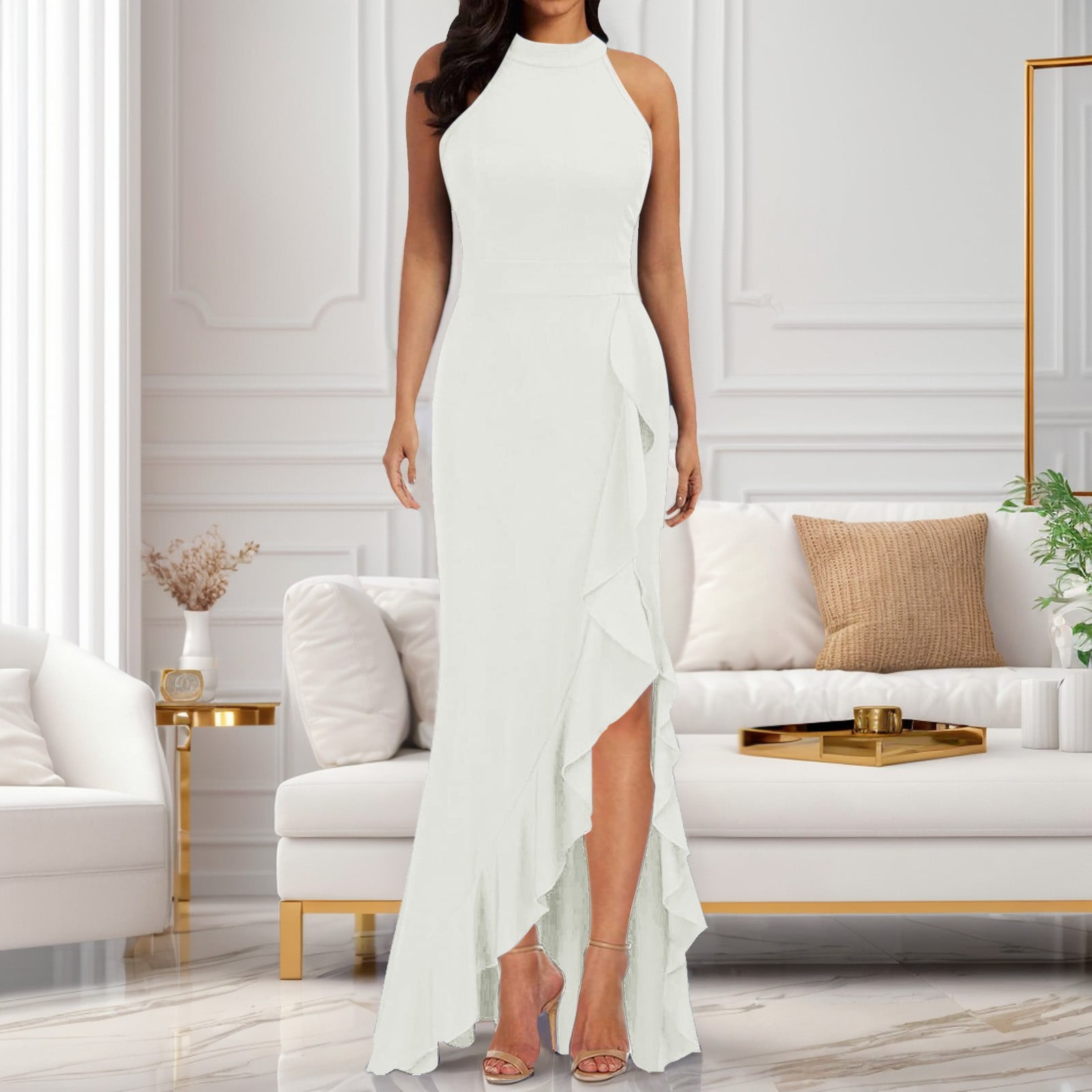 JIANJIA Casual Dresses For Women Split Sleevele Slim Fit Ruffle Long