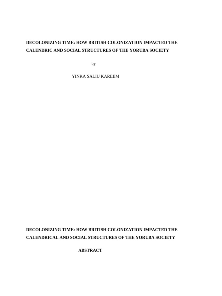 DECOLONIZING TIME: HOW BRITISH COLONIZATION IMPACTED THE CALENDRICAL