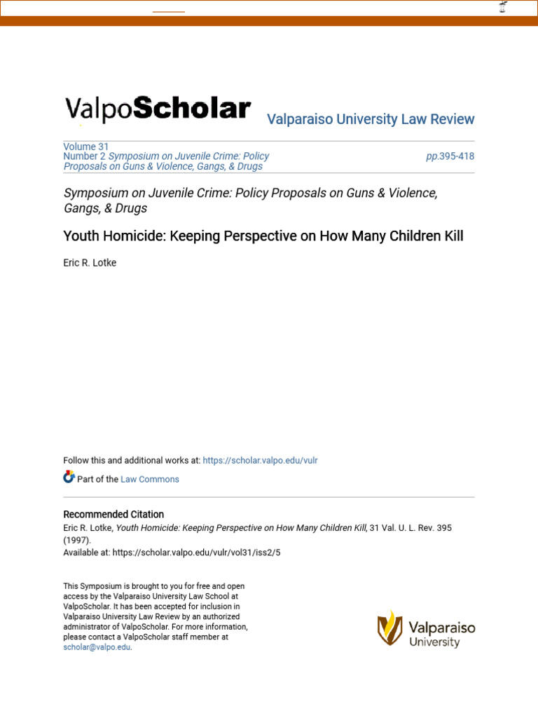 Youth Homicide: Keeping Perspective On How Many Children Kill Youth