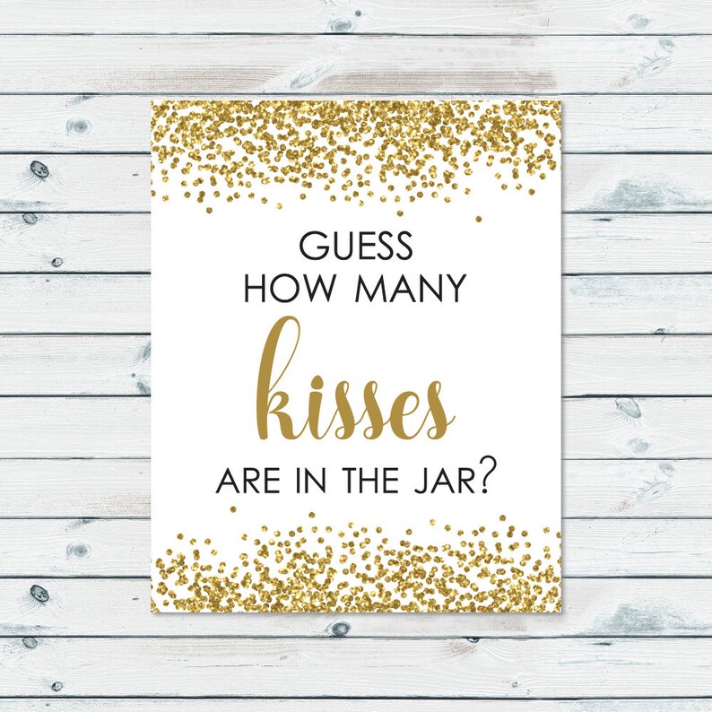 How Many Kisses in the Jar Printable Gold Confetti Kisses Etsy