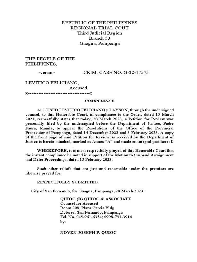 Compliance: WHEREFORE It Is Most Respectfully Prayed of This Honorable