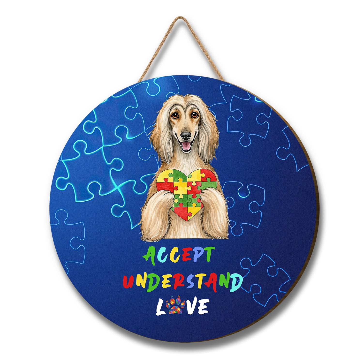 Autism Awareness Afghan Hound Accept Understand Love Round Wood Sign
