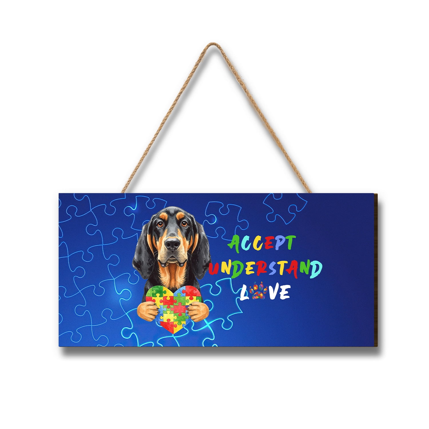 Autism Awareness Bloodhound Accept Understand Love Landscape Wood Sign