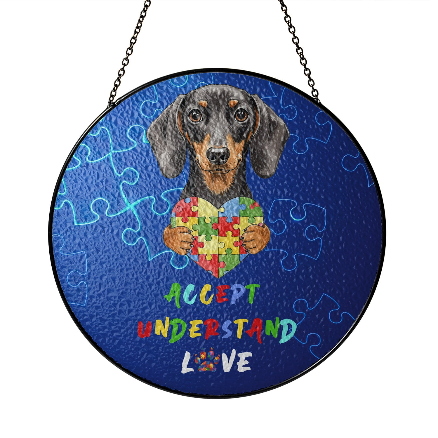 Autism Awareness Dachshund Accept Understand Love Stained Glass