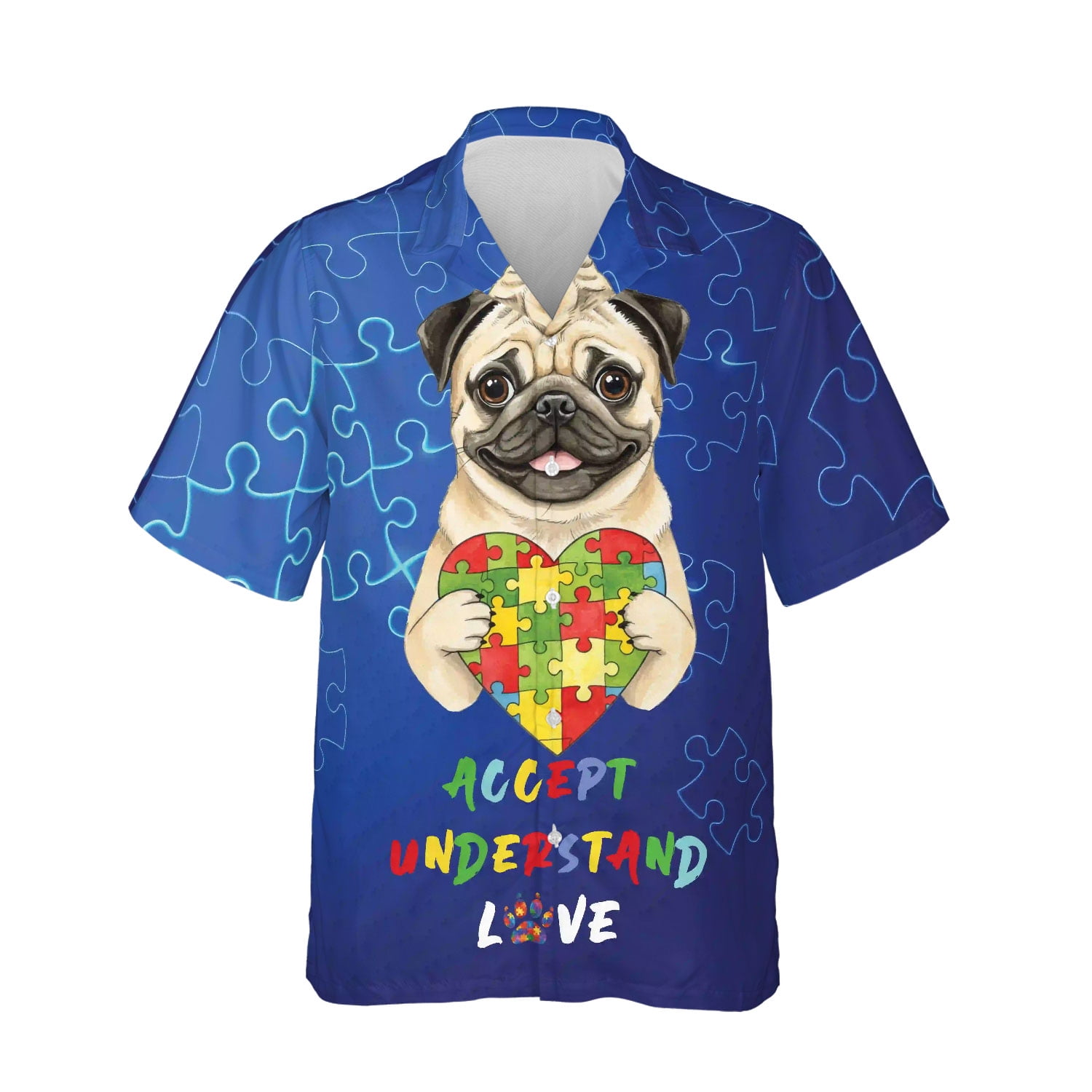 Autism Awareness Pug Accept Understand Love Hawaiian Shirt Breathable