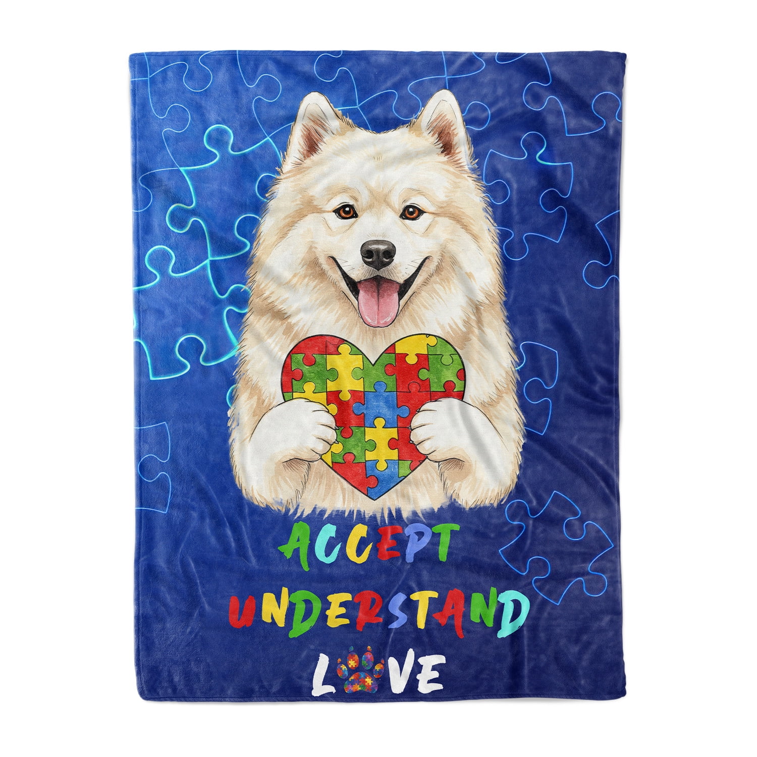 Autism Awareness Samoyed Accept Understand Love Cozy Fleece Blanket
