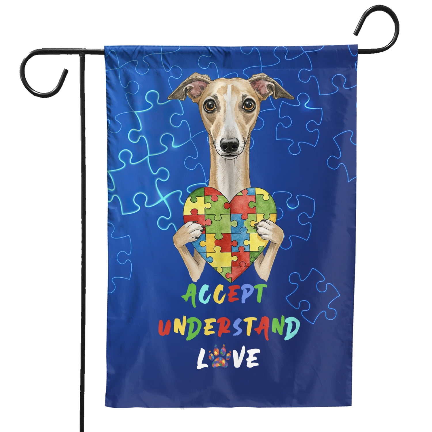 Autism Awareness Whippet Accept Understand Love Garden Flag 12x18in