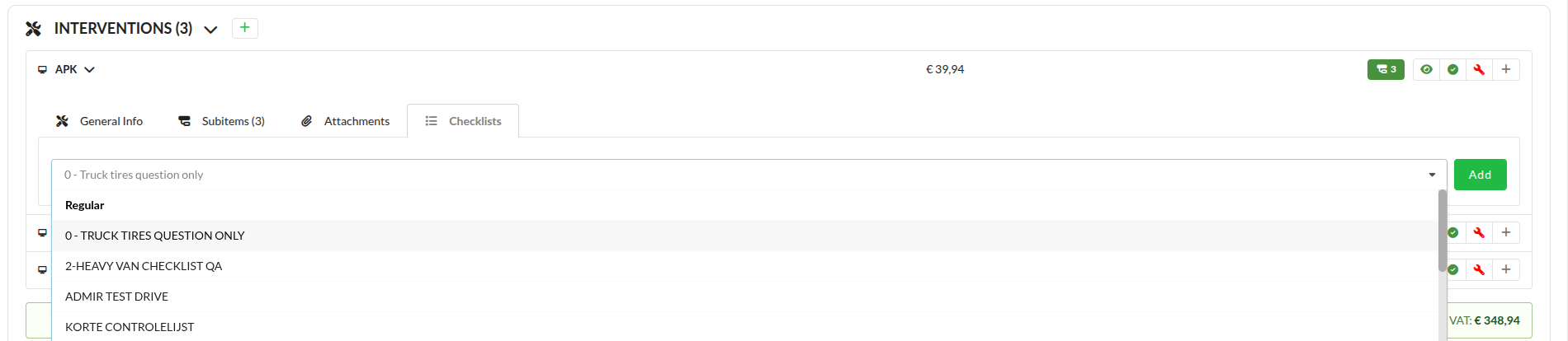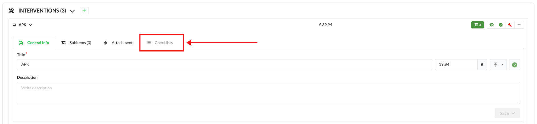 Add checklist to intervention