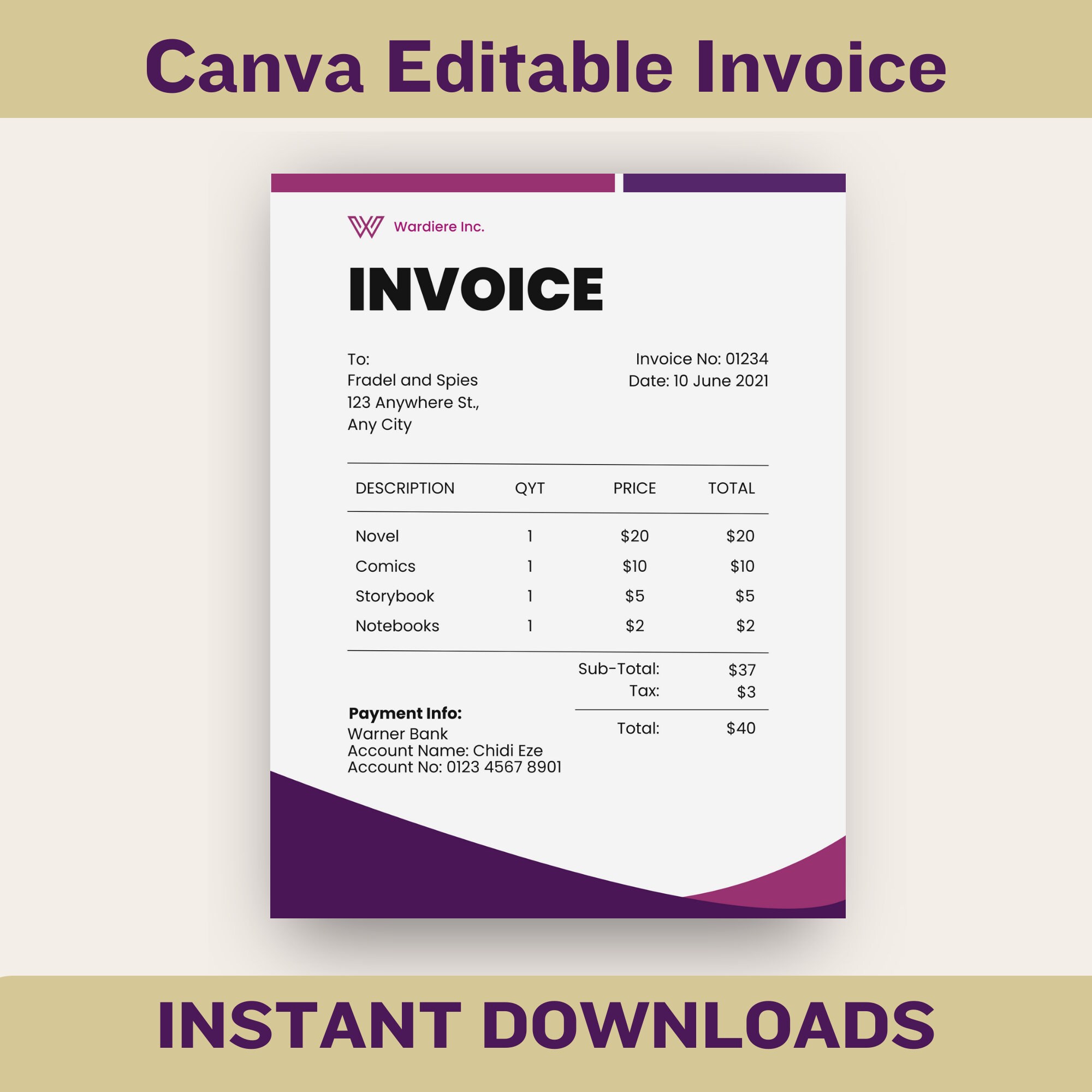 Invoice Template Canva Template Instant Download Digital Download