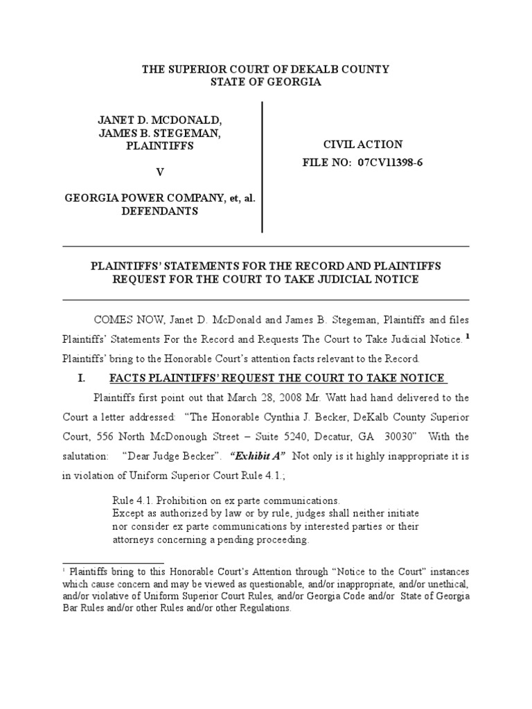 PLAINTIFFS STATEMENTS FOR THE RECORD AND PLAINTIFFS REQUEST FOR THE