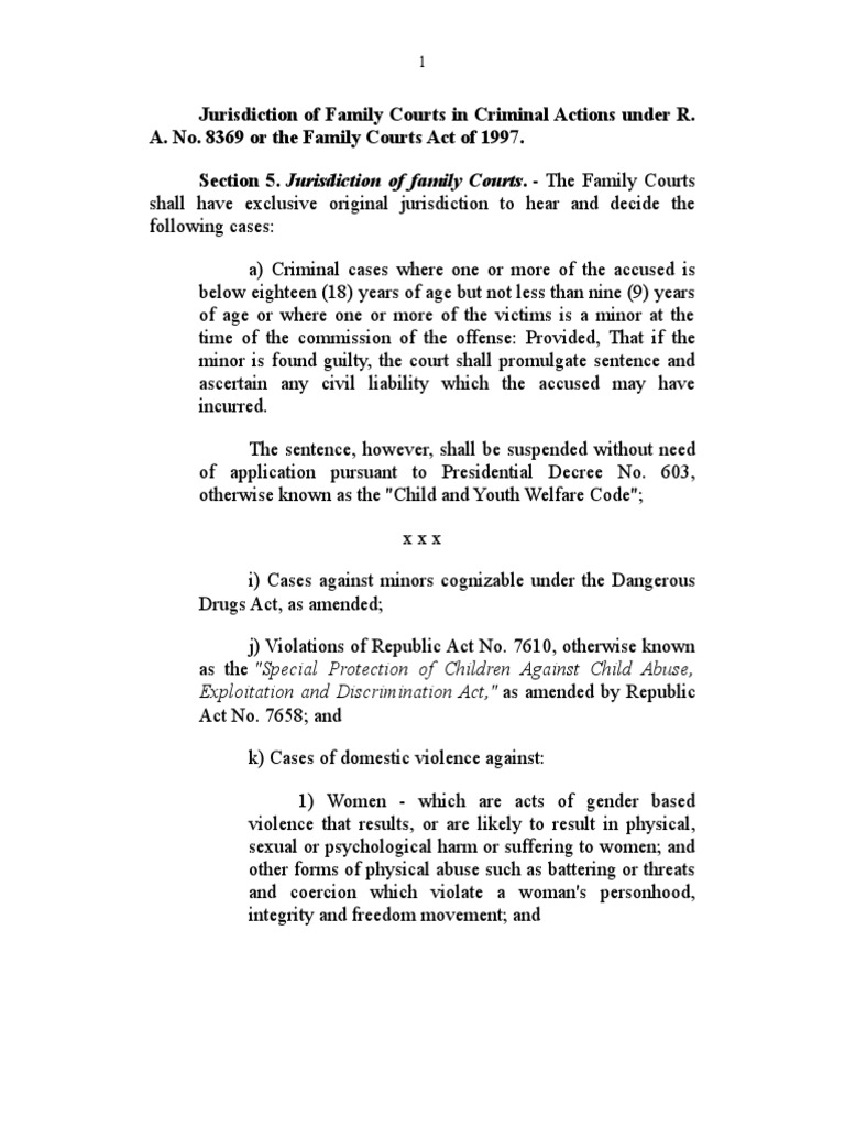 Jurisdiction of Family Courts in Criminal Actions PDF Domestic