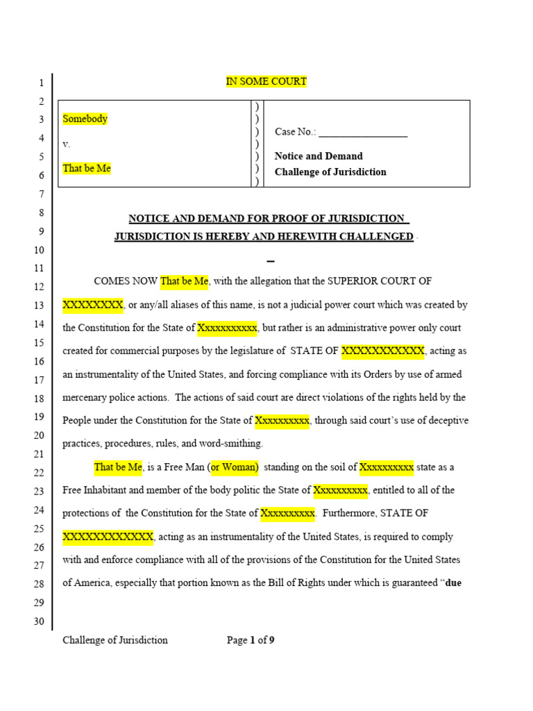 How to Challenge Jurisdiction ISelfLawAmMaster com