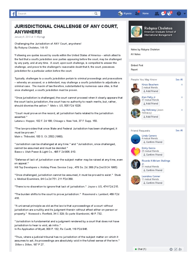 Jurisdictional Challenge of Any Court Anywhere PDF Jurisdiction