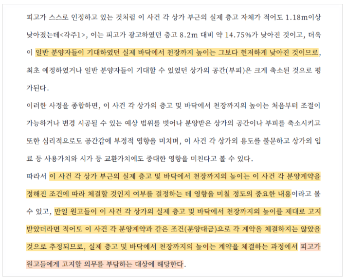 실제 천장고 높이가 홍보내용과 다른 것을 근거로 분양계약취소 로톡
