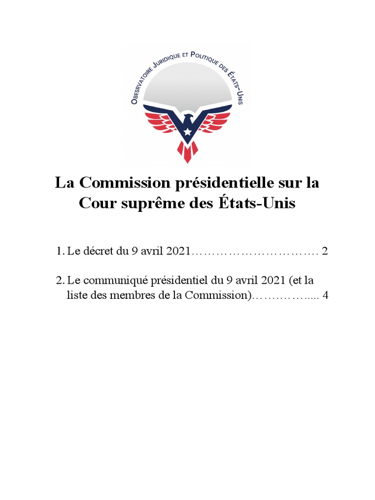 Cour Suprême Commission de Réforme Créée Par Joe Biden 9 Avril 2021