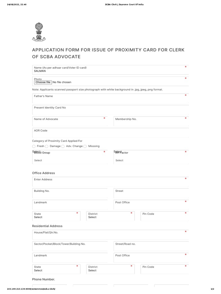 SCBA Clerk Supreme Court of India PDF Identity Document Access