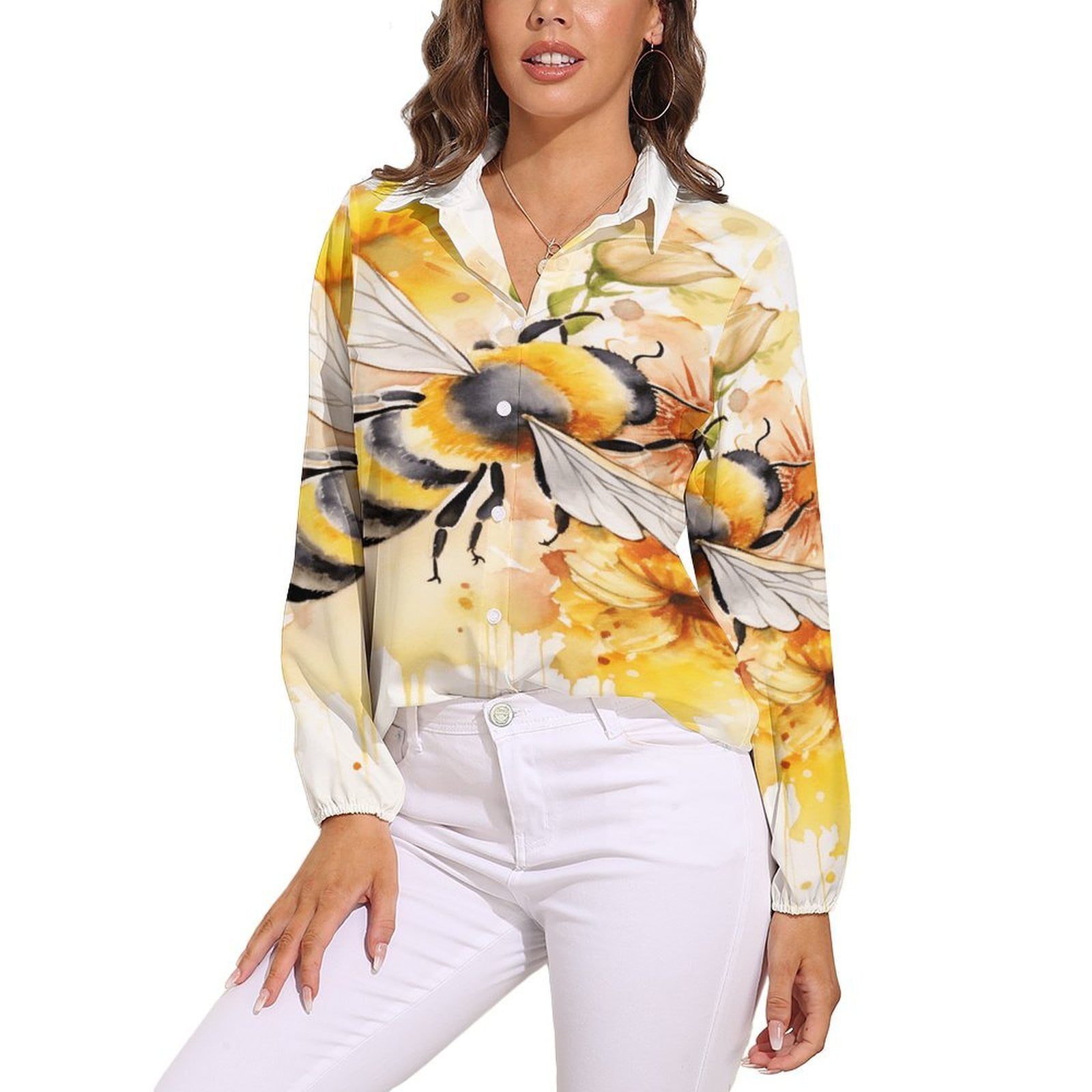 Autumn Women Shirt Tops Honey Bees That Collect Nectar Long Sleeve