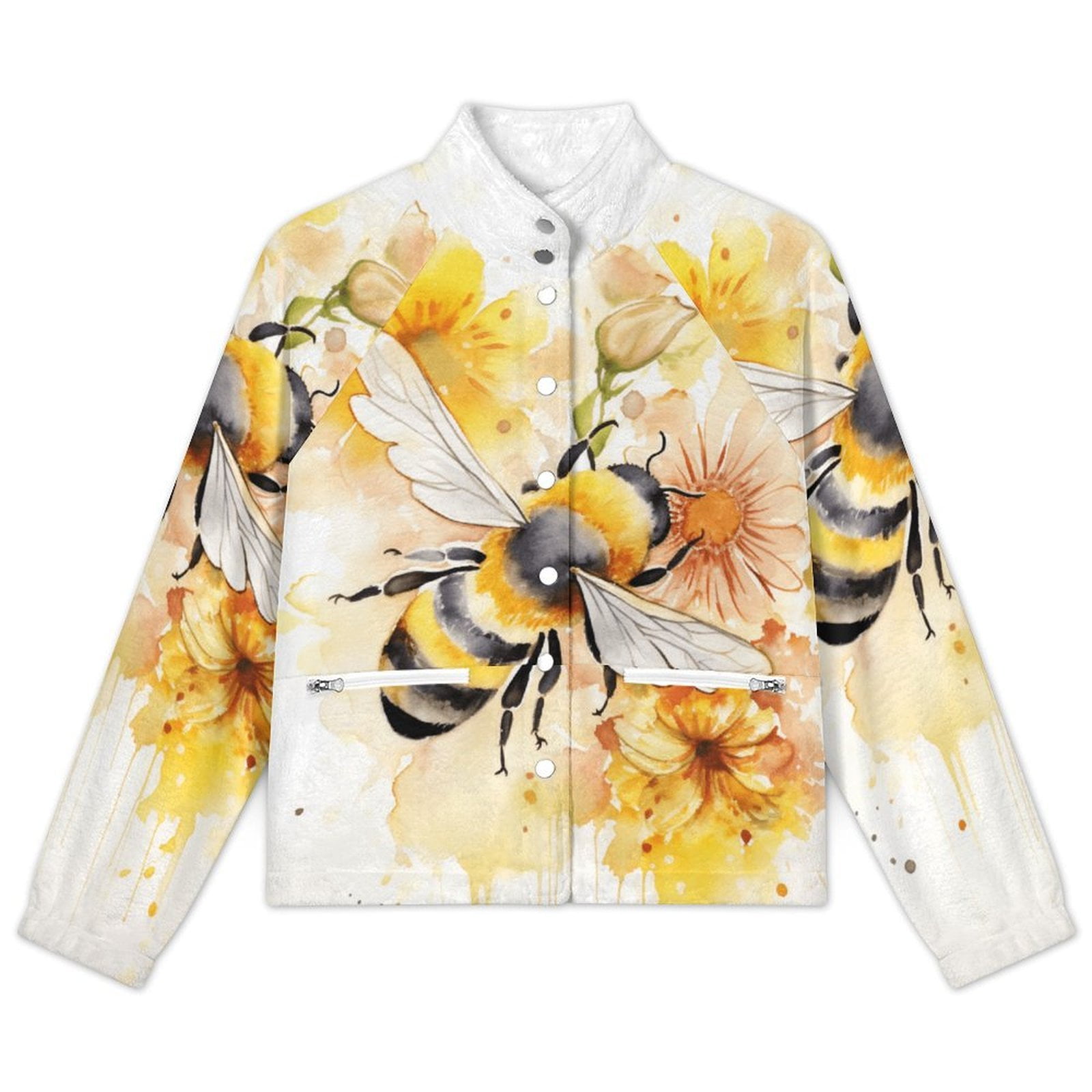 Honey Bees That Collect Nectar Autumn Winter Jacket Women Coat Short
