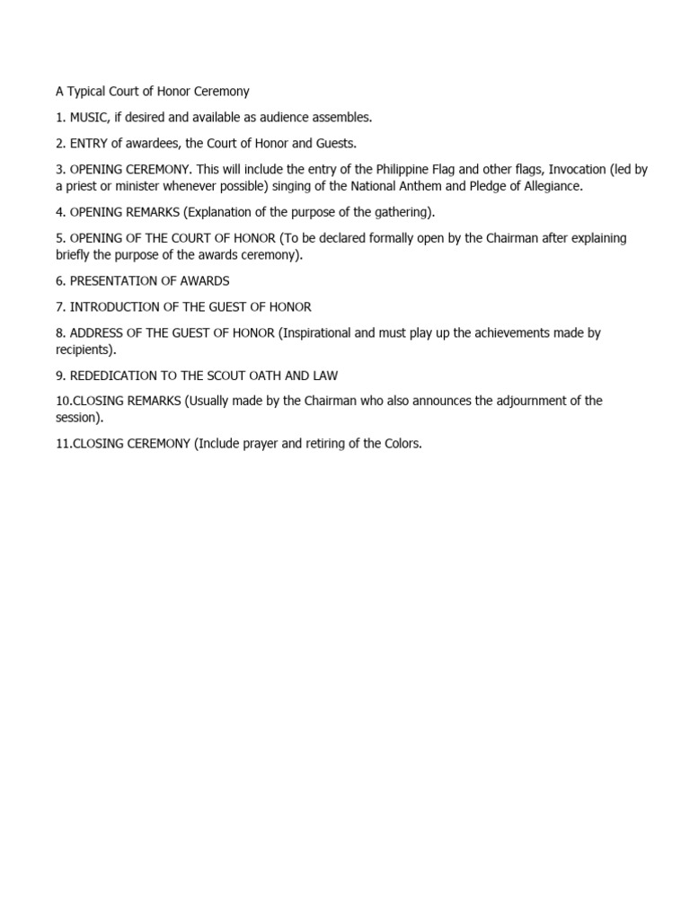 A Typical Court of Honor Ceremony MSR PDF Scouting