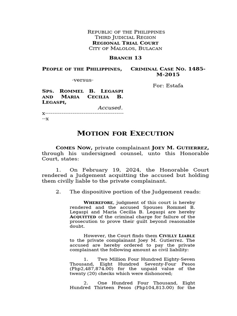Draft Motion for Execution V1 Republic of the Philippines HUMAN