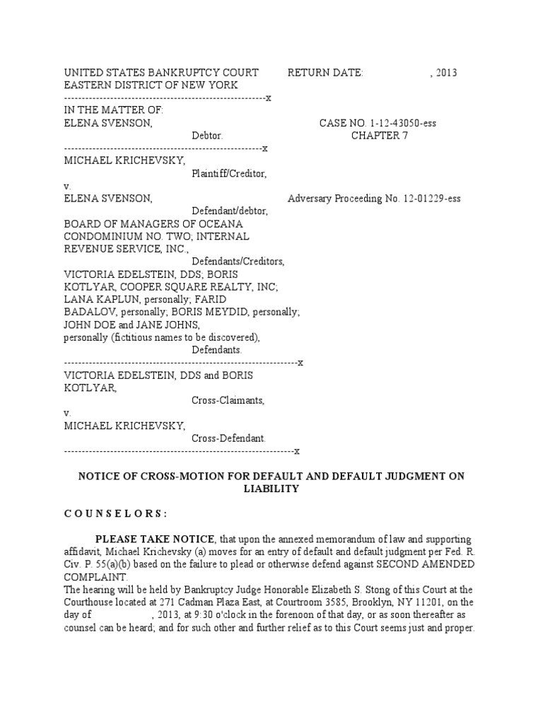 Cross Motion For Default Judgment PDF Federal Rules Of Civil