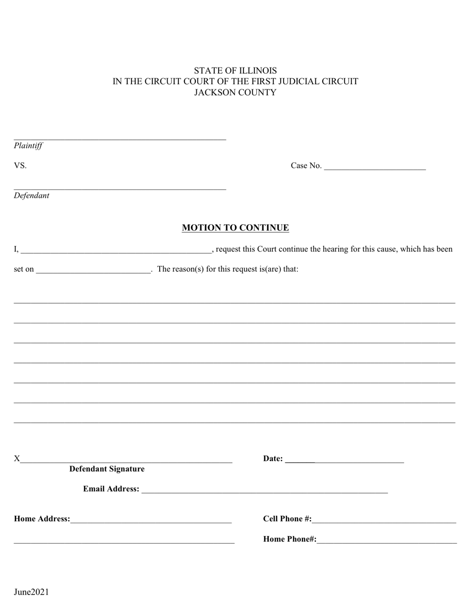 Jackson County Illinois Motion to Continue Fill Out Sign Online and