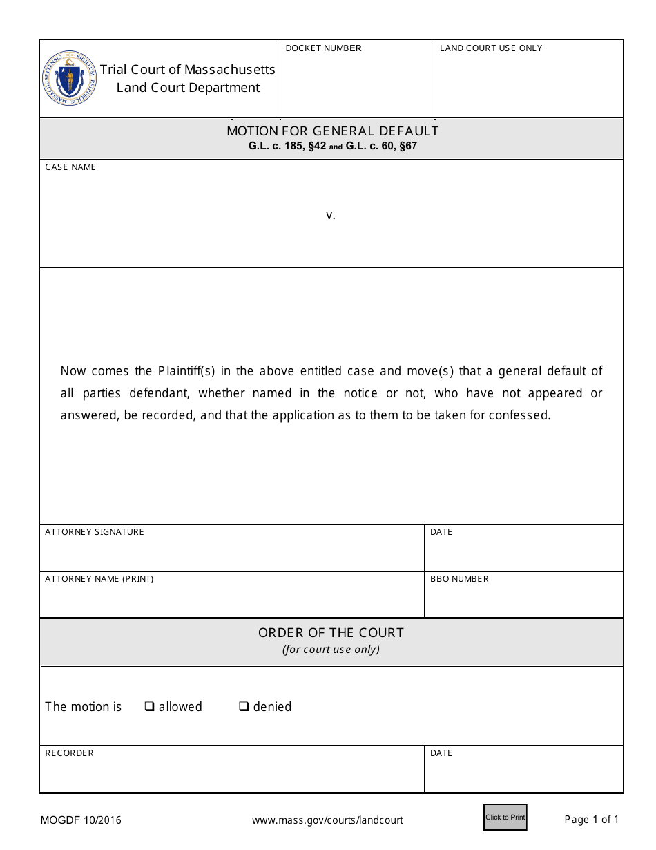 Massachusetts Motion for General Default Fill Out Sign Online and