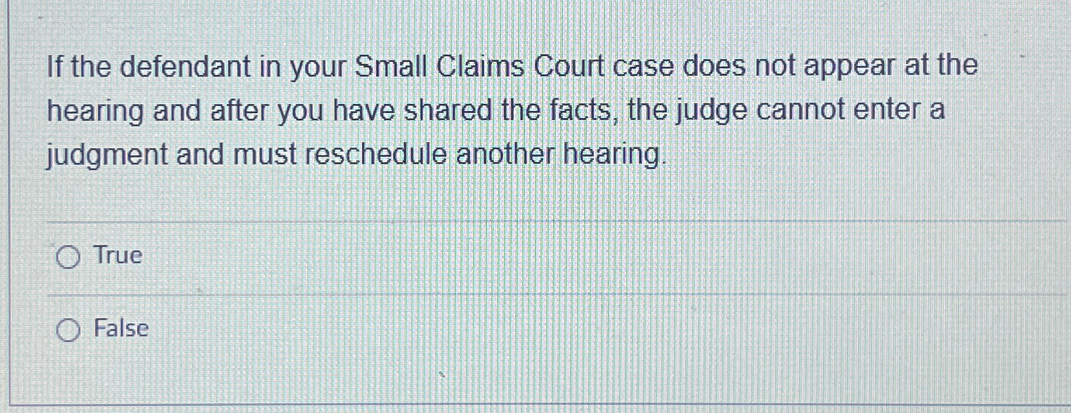 Solved If the defendant in your Small Claims Court case does Chegg com