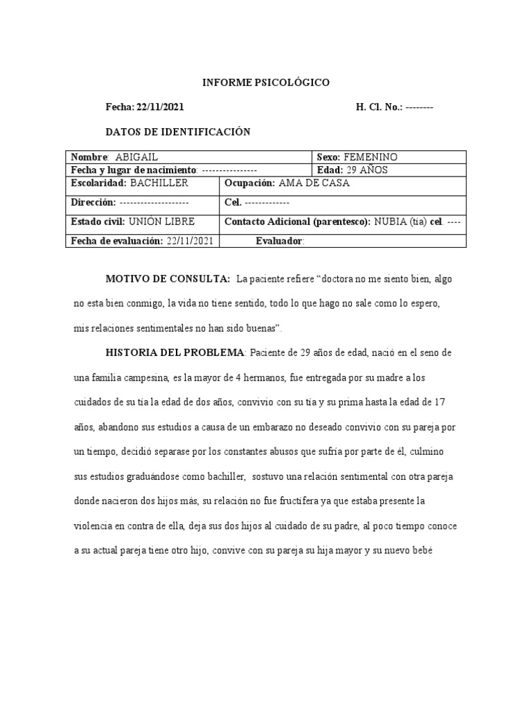 INFORME PSICOLÓGICO PDF Violencia Abuso infantil