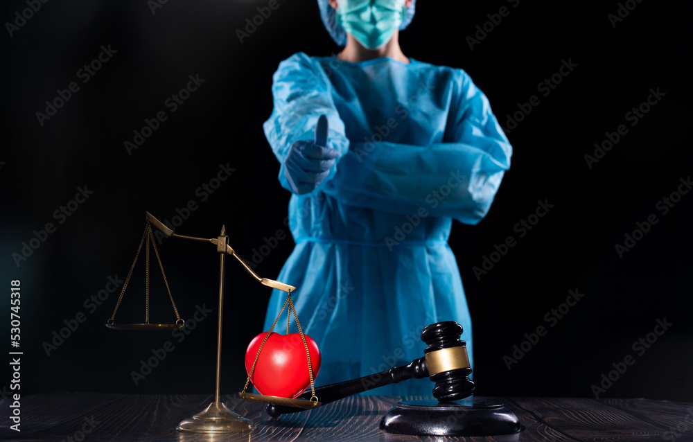 Stethoscope and justice mullet hammer is law protection for medical