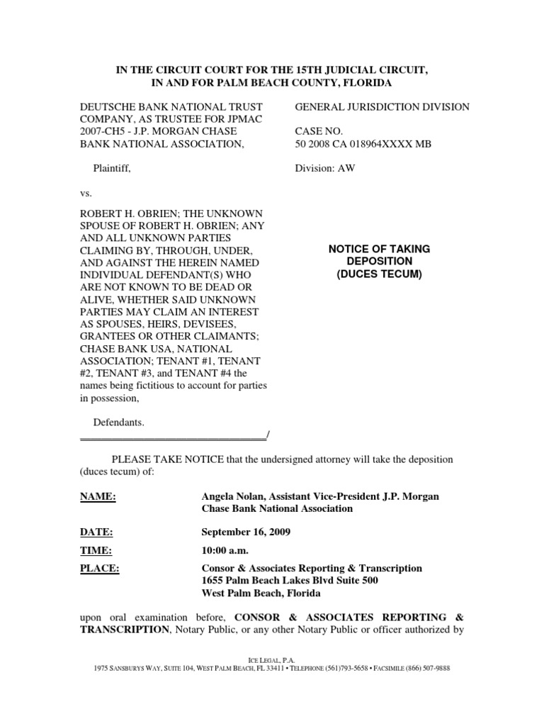 Notice of Taking Deposition Example Get to the Truth Deposition