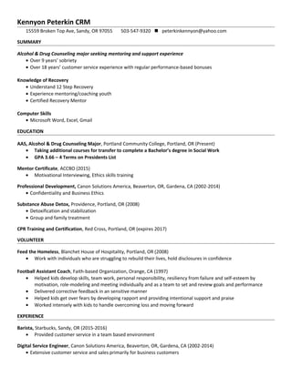 Final Resume DOC Substance Abuse Diseases and Conditions