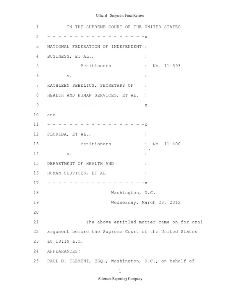 March 28: Supreme Court Hearing Transcript Department of Health and