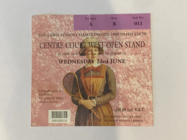 WIMBLEDON TENNIS CHAMPIONSHIPS Sw19 Used Centre Court Ticket 1999 Pete